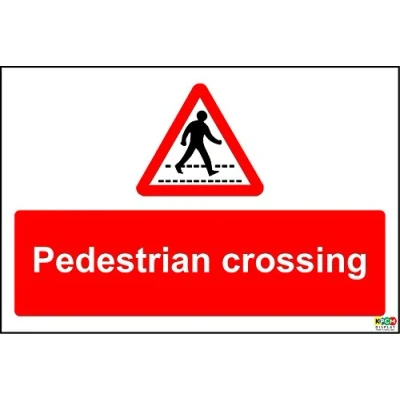 Pedestrian crossing sign 1.2mm rigid plastic 300mm x 200mm Digitally printed and laminated for extra durability Drill and screw in position or use double sided tape to mount onto suitable surface.