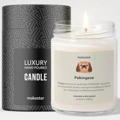 Pekingese Candle Over 100+ Breeds Luxury Soy Wax Vanilla, Jasmine, Sugared Almond Gift Makester