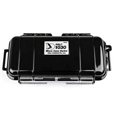 PELI 1030 Watertight Micro Case for Small Personal Belongings, IP67 Water and Dustproof, 1L Capacity, Made in US, Black/Black Liner