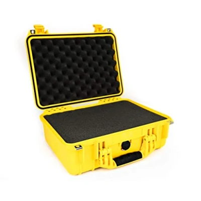 PELI 1450 Watertight Shockproof Case for Valuable Equipment, IP67 Water and Dustproof, 31L Capacity, Made in Germany, With Customisable Foam Insert, Yellow