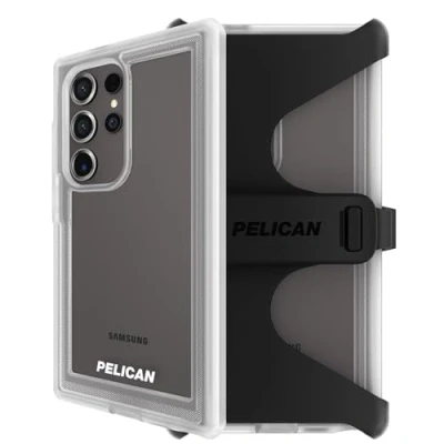 Heavy Duty Case: This Pelican case for Samsung Galaxy S24 Ultra showcases and preserves the natural look of your device while providing extreme rugged protection, includes a belt, holster kickstand, and clip to give extra functionality, specially made for those who need more than protection; Port covers stop any dust from entering and scratching the body of the phone 18ft Military-Grade Drop Protection: Voyager Series Samsung Galaxy S24 Ultra protective case with four reinforced layers of rigid polycarbonate and energy-absorbing TPR and PU rubber disperse impact energy, tested to military specifications to survive multiple drops; This case for Samsung Galaxy S24 Ultra has a shock-absorbing interior and reinforced corners work together to create an outstanding 18ft drop protection that exceeds military drop testing standards Recycled Materials: This Samsung Galaxy S24 Ultra phone case is crafted using standard certified recycled content, creating less demand for limited resources and lowering greenhouse gas emissions with the same trusted quality; The premium materials used in these phone cases for Samsung Galaxy S24 Ultra offer long-term protection and make it look new every time you use it Wireless Charging: This Samsung Galaxy S24 Ultra cover works with wireless (Qi) chargers to provide seamless charging and precise cutouts provide easy access to buttons and ports; Also, the case does not block your phone's signals and supports reverse wireless charging (PowerShare) Package Contents: 1 Unit of Pelican Samsung Galaxy S24 Ultra Case - Voyager Series Clear (fits New Samsung Galaxy S24 Ultra 6.8 Inch only); Limited Lifetime Warranty