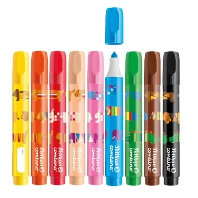 VIBRANT 9-COLOUR FELT TIP SET – Includes thick, washable pens in bright assorted colours, including skin tones, perfect for colouring, drawing, and creative school projects CONICAL TIP FOR THICK AND FINE LINES – Allows children to create detailed drawings as well as bold colouring, supporting artistic development and hand control ANIMAL MOTIF DESIGN WITH NAME FIELD – Fun motifs make art enjoyable, while the writable name space helps keep pens personalised and easy to identify CONVENIENT FOLDING BOX STORAGE – Compact box keeps all nine pens organised, making them easy to transport for school, leisure, or home use WASHABLE & CHILD-FRIENDLY INK – Special non-toxic formula washes out of most textiles, providing a safe and mess-free experience for young artists