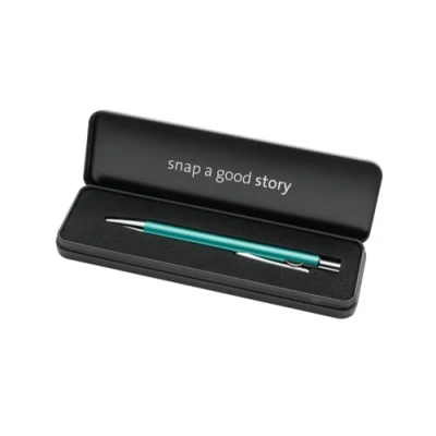 Ballpoint pen with push mechanism in metal case Elegant and timeless shape Ergonomically balanced weight Equipped with replaceable large format refill; blue color and conforms to ISO 12757-2 standard for document resistant ink Metal 100% recyclable