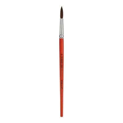 This Pelikan brush is a classic hair brush with a thickness of 10. It has a round shape and is particularly useful for painting curved medium to wide lines. The hairs of the brush are attached to the orange brush handle with a seamless aluminium ferrule. It is made from a fine hair blend, so it is a classic hair or round brush made of natural hair. These Pelikan brushes are especially suitable for applying top and tempera paints., Manufacturer: Pelikan