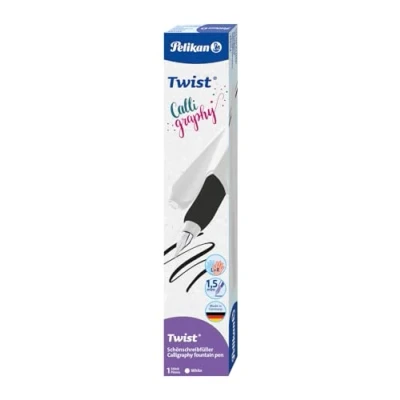 Calligraphy fountain pen with cartridge filling system; universal for right and left-handed users; nib 1.5 mm Ergonomic shape fits perfectly in the hand; ideal for longer writing; gently gliding stainless steel nib; scratch-free writing feeling Unique twisted look; in trendy colour combinations; made in Germany Colour: white 1 piece in folding box