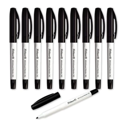 FINE 1 MM TIP FOR PRECISE WRITING – Delivers clear, sharp black lines, ideal for detailed notes, diagrams, timetables, and small text on whiteboards CAP-OFF INK PROTECTION UP TO 48 HOURS – Ink resists drying out for up to 48 hours if the cap is left off temporarily, ensuring reliable performance during busy lessons or meetings EASY DRY-ERASE WITH NO STAINING – Writes smoothly and erases cleanly without residue on non-porous surfaces such as whiteboards and glass QUICK-DRYING, LOW-ODOR INK – Safe and comfortable to use in classrooms, offices, and home environments, reducing smudging and strong smells VALUE PACK OF 10 WITH STORAGE BOX – Supplied in a convenient folding box for organised storage, perfect for schools, offices, or frequent whiteboard users