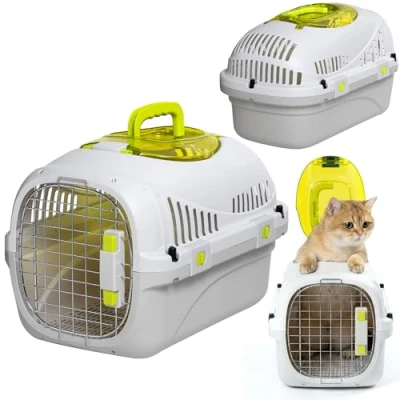 TOP VIEWING HATCH: Peluvio Safy cat carrier lets you check on your cat through the top hatch and calm them without opening the front door. A practical cat travel carrier for vet runs and short trips when your pet needs reassurance SECURE METAL DOOR: This hard cat carrier uses a sturdy metal door with double locking clips to help prevent escapes during travel. The rigid shell keeps its shape, making it a reliable pet carrier for cats in the car or waiting room DRY COMFORT BASE: The removable grid keeps paws lifted while you slide a hygiene pad underneath, helping the interior stay fresher on longer journeys. A smart plastic cat carrier solution that supports cleaner travel for cats and owners EASY TO CARRY: A large folding handle gives a steady grip on the move and folds down for compact storage at home. This cat transporter works as a pet carrier for cats when you need quick lifts in and out of the car, then store it neatly after travel AIRFLOW AND CLEANING: Multiple ventilation holes keep air moving so the carrier feels less stuffy, and the smooth inside wipes clean after every trip. A versatile cat carrier option for everyday travel, designed for pets up to 5 kg