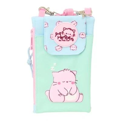 WARRANTY AND QUALITY: PEMBE THE PINK CAT Official Mobile Phone Holder with 2 Years Warranty UNIQUE DESIGN: Made of a very durable polyester material and smooth zippers. Easy to wash SPACIOUS AND LIGHTWEIGHT: Accommodation for mobile phone up to 6.9''. Zip compartment for coins. Adjustable hanging cord ALL AUDIENCES: Great for kids, adults and teenagers. Perfect for carrying your money and important cards everywhere RESISTANCE AND DURABILITY: This product is specially designed with durability in mind, made with high strength materials to ensure that it can be used in all kinds of activities, ensuring its functionality