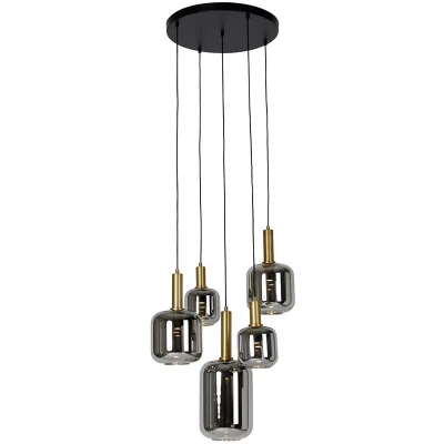Pendant Light Black with Gold and Smoke Glass Incl. 5 PUCC Zuzanna