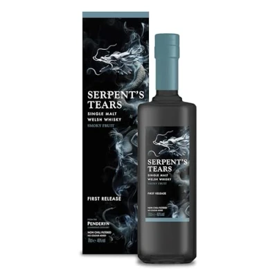 PENDERYN SERPENT’S TEARS IS A LLANDUDNO PEATED, SMOKY FRUIT SINGLE MALT WELSH WHISKY From the Viking longships it looked like a giant serpent’s head; the misty outline of Llandudno’s North Wales coastline was the body that resembled a fearsome beast. Limited Edition Single Malt Whisky. TASTING NOTES NOSE - An autumnal day in a glass. Dry leaves, orchard fruits, wood smoke - dry logs on the crackling open fire. Some creamy notes in the background and heavy toasted bread. TASTING NOTE PALATE - Sweet peat, soft vanilla cream, sugared pancake with burnt edges. Baking apples with the hint of malt and a touch of peppery spice and clove. FINISH - Warming soft peat that lingers in the mouth with a barley sweetness.