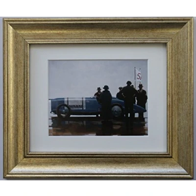 Framed print titled 'Pendine Beach' by artist: Jack Vettriano Chunky high quality 'antique gold/distressed silver' colour frame Overall size including frame: 13" x 11" - 33cm x 28cm Actual image size: 7" x 5" - 18cm x 13cm Arrives ready to hang on the wall.