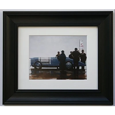Framed print titled 'Pendine Beach' by artist: Jack Vettriano Chunky high quality frame & high quality acid free bevel mount. Overall size including frame: 13" x 11" - 33cm x 28cm Actual image size: 7" x 5" - 18cm x 13cm Arrives ready to hang on the wall.