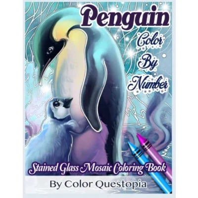 Penguin Color By Number Stained Glass Mosaic Coloring Book: Cute Gifts Books For Adults Stress Relief and Relaxation