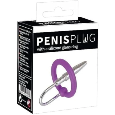 Penis Plug + Silicone Glans Ring Purple, Silver 6.5 cm
