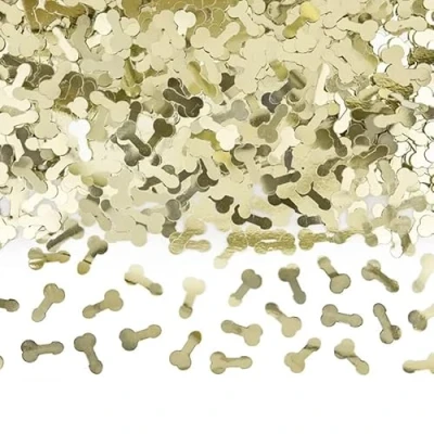 Material and Design: Confetti Penises made of metallic paper in gold colour, 30 grams per pack Party Decoration: Table scatter decorations featuring penis-shaped confetti for hen parties and bachelorette celebrations Metallic Finish: Shimmering gold metallic finish that adds a festive and playful touch to party tables Versatile Use: Suitable for bridal showers, engagement parties, and wedding-related celebrations requiring adult-themed decorations Package Contents: One pack of 30 grams of gold penis-shaped confetti pieces for table decoration, Manufacturer: Inevitable