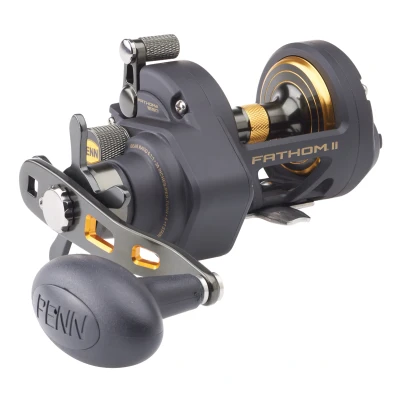 Penn Fathom II Star Drag RH Marine Fishing Reel - Available in different variants! - Quality sea fishing reel - Handle position: right - Number of ball bearings: 6+1 (shielded stainless steel) - Precisely adjustable star drag with Versa-Drag drag system - Full metal body and side plates - Side plate with quick access to magnetic brake system - Free-floating spool - Instant anti-reverse The Penn Fathom II Star Drag reel features an all-metal body and side plates. A button on the side plate provides quick access to the magnetic braking system, and the precisely adjustable star slip lets you master the biggest fish! The shaft of the Fathom II is specially designed for making distant, effortless casts. Note: This reel is right-handed. This means that you hold the rod in your left hand and turn the handle with your right. Available variants: Penn Fathom II Star Drag RH 12 - Model: 12 - Gear ratio: 6.1:1 - Maximum drag force: 13.6kg - Line capacity: 0.35mm/270m - Line retrieve: 76cm - Weight: 479g Penn Fathom II Star Drag RH 15 - Model: 15 - Gear ratio: 6.1:1 - Maximum drag force: 13.6kg - Line capacity: 0.35mm/325m - Line retrieve: 76cm - Weight: 485g Penn Fathom II Star Drag RH 25 N - Model: 25 N - Gear ratio: 6.1:1 - Maximum drag force: 13.6kg - Line capacity: 0.46mm/315m - Line retrieve: 107cm - Weight: 550g Penn Fathom II Star Drag RH 25 N P - Model: 25 N P - Gear ratio: 4.8:1 - Maximum drag force: 13.6kg - Line capacity: 0.46mm/315m - Line retrieve: 80cm - Weight: 561g Penn Fathom II Star Drag RH 30 - Model: 30 - Gear ratio: 6.1:1 - Maximum drag force: 13.6kg - Line capacity: 0.49mm/400m - Line retrieve: 107cm - Weight: 570g Penn Fathom II Star Drag RH 40 - Model: 40 - Gear ratio: 6.1:1 - Maximum slip force: 13.6kg - Line capacity: 0.54mm/385m - Reach: 107cm - Weight: 575g