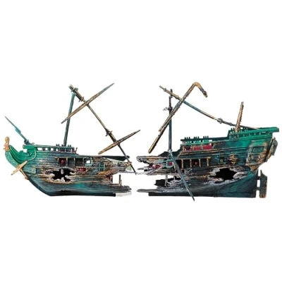 AIR DRIVEN ORNAMENTS BRING ANIMATION TO YOUR TANK: Aquarium ornament has live action with moving masts that sway, lifeboat that moves, and bubbles that rise from the holes in the ship. PROVIDES MUCH NEEDED AERATION FOR YOUR TANK: Ship attaches to air pump enabling movement providing both visual appeal as well as aerating your tank in a unique, fun way. Air pump, tubing and gang valve not included. MEASUREMENTS: Large shipwrecked boat comes in two large pieces that measure 9.5 inches across by 4.7 inches high. Masts can be raised to over 7 inches if desired. MADE OF FISH SAFE AND DURABLE MATERIAL: Made of safe durable resin, this fish tank ornament is hand painted with detail and is safe for use in both freshwater and saltwater aquariums. SHOP PENN PLAX FOR ALL YOUR PET’S NEEDS: continue to customize your aquarium with Penn Plax Action Ornaments and other decorations and décor.