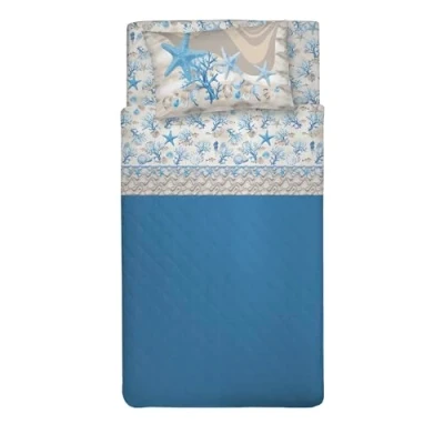 PENSIERI DELICATI 100% Cotton Double Bed Set, 120 x 200 cm, Complete with Bottom Sheet, Top and 1 Pillowcase, Made in Italy, Blue Navy Pattern