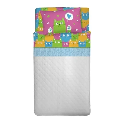 PENSIERI DELICATI 100% Cotton Double Bed Set, 120 x 200 cm, Complete with Bottom Sheet, Top Sheet and 1 Pillowcase, Made in Italy, Happycat Multicolour Pattern