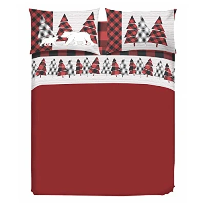 PENSIERI DELICATI 100% Cotton Double Bed Set 180 x 200 Including Bottom Sheet, Top and 2 Pillowcases, Made in Italy, Canada Red