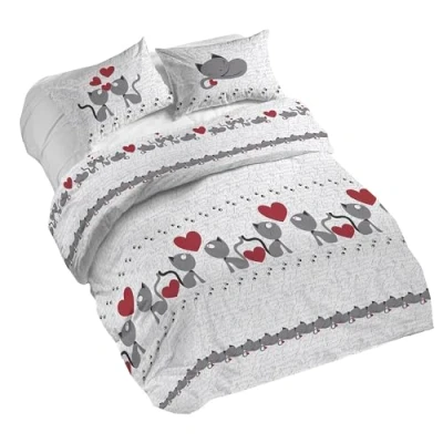 PENSIERI DELICATI 100% Cotton Double Duvet Cover Set, Complete with 250 x 200 cm Sleeping Bag and 2 Pillowcases 52 82 cm, Made in Italy, Machine Washable At 40 Degrees, Grey Cats Design