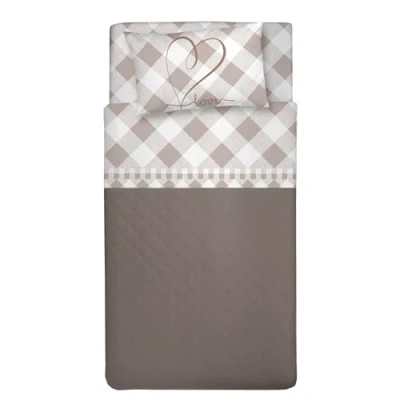 PENSIERI DELICATI 3/4 Bed Sheet Set, 100% Cotton, 120 x 200 cm, Includes Bottom Sheet, Top and 1 Pillowcase, Made in Italy, Beige Lovely Check Pattern
