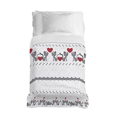 PENSIERI DELICATI Bedspread 170 x 280 cm, Single Sheet 100% Cotton Pique, Ideal as a Furniture Cover, 1 Square Bed Blanket, Grey Kittens, Made in Italy