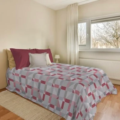 PENSIERI DELICATI Bedspread 220 x 280 cm, 100% Cotton Pique Single Towel, Ideal as a Furnishing Double Bed Blanket, Athens Red Pattern, Made in Italy