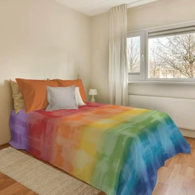 PENSIERI DELICATI Bedspread 220 x 280 cm, 100% Cotton Pique Single Towel, Ideal as a Furnishing Double Bed Blanket, Rainbow Design, Made in Italy