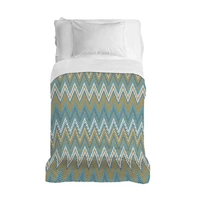 PENSIERI DELICATI Bedspread 220 x 280 cm, Single Sheet 100% Cotton Pique, Ideal as a Furniture Towel, 1 and Half Bed Blanket, Green Barbed Pattern, Made in Italy