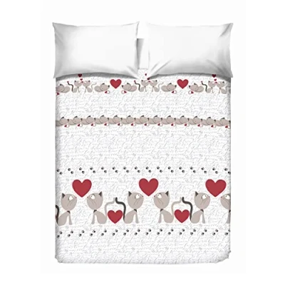 PENSIERI DELICATI Double Bed Cover 260 x 280 cm, Single Sheet 100% Cotton Pique, Ideal as Furnishing Towel, Blanket Save 2 Squares, Beige Kittens, Made in Italy