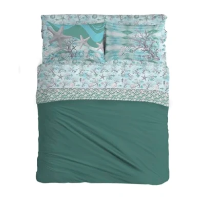 PENSIERI DELICATI Double Bed Set 100% Cotton, Sheet Set, 180 x 200 cm, Including Bottom Sheet, Top and 2 Pillowcases, Made in Italy, Green Navy Pattern
