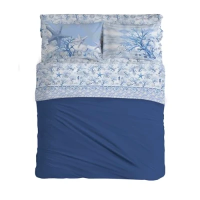 PENSIERI DELICATI Double Bed Set 100% Cotton, Sheet Set, 180 x 200 cm, Including Bottom Sheet, Top and 2 Pillowcases, Made in Italy, Navy Blue Pattern