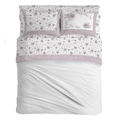 PENSIERI DELICATI Double Bed Set, Flannel, 100% Warm and Soft Cotton, 180 x 200 cm, Includes Bottom Sheet, Top 2 Pillowcases, Made in Italy, 8284 Pink Square