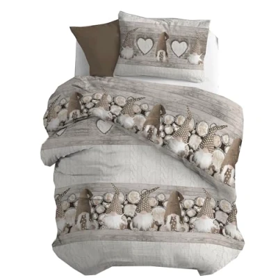 PENSIERI DELICATI Flannelette Single Duvet Cover Set, 100% Cotton, 155 x 200 cm Bag and Pillowcase 52 82 cm, Made in Italy, Machine Washable at 40 Degrees, Beige Gnome Pattern