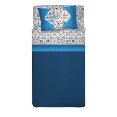 PENSIERI DELICATI Single Bed Set, 100% Cotton, Sheet 90 x 200 cm, Including Bottom Sheet, Top and 1 Pillow Case, Made in Italy, Blue Majolica Pattern