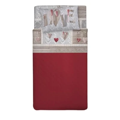 PENSIERI DELICATI Single Bed Set, 100% Cotton, Sheet 90 x 200 cm, Including Bottom Sheet, Top and 1 Pillow Case, Made in Italy, Shabby Love Red Design