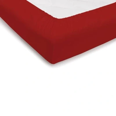 PENSIERI DELICATI Single Bed Sheet 90 x 200 cm, Plain Fitted +25 Made of 100% Cotton, in Italy, Red