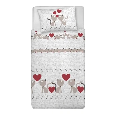PENSIERI DELICATI Single Duvet Cover Set, 100% Cotton, Complete with 155 x 200 cm Bag and 1 Pillowcase 52 82 cm, Made in Italy, Machine Washable At 40 Degrees, Beige Cats Design