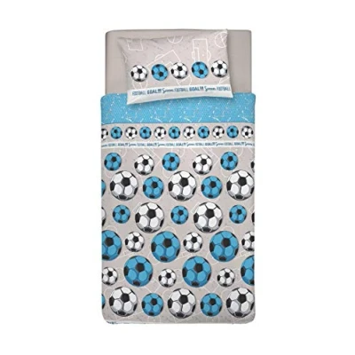 PENSIERI DELICATI Single Duvet Cover Set, 100% Cotton, Complete with 155 x 200 cm Bag and 1 Pillowcase 52 82 cm, Made in Italy, Machine Washable At 40 Degrees, Blue Football Design