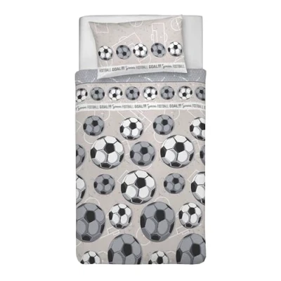 PENSIERI DELICATI Single Duvet Cover Set, 100% Cotton, Complete with 155 x 200 cm Bag and 1 Pillowcase 52 82 cm, Made in Italy, Machine Washable At 40 Degrees, Grey Football Design