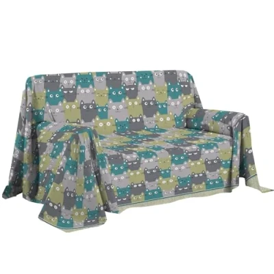 PENSIERI DELICATI Sofa Cover, 250 x 290 cm, Made in Italy, 100% Pure Cotton Fabric, Happycat Green Pattern, Ideal as a Furniture, or Summer Bedspread (Double Bed)