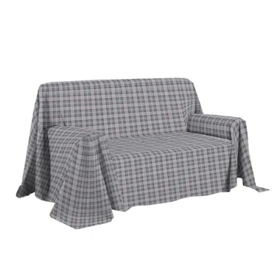PENSIERI DELICATI Sofa Cover, 250 x 290 cm, Made in Italy, 100% Pure Cotton, Grey Tartan Pattern, Ideal as a Furniture, or Summer Bedspread (Double Bed)