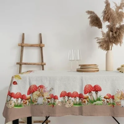 PENSIERI DELICATI, Tablecloth 145 x 190 cm, 100% Panama Cotton Table Cover for 6 People, Digital Print in High Resolution, Gnometti Pattern, Rectangular