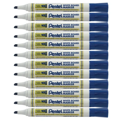 Pentel 4.5mm Chisel Tip White Board Marker Blue (Pack of 12), MW86 CE