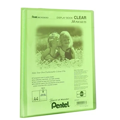 Pentel A4 Recycology Display Book with 30 Clear Pocket Green