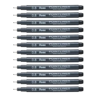 Pentel Arts Pointliner, 0.8mm Tip, Black Pigment ink, Pack of 12 pens