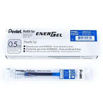 Pentel EnerGel Pure Refill for Liquid Gel Rollerball Pen Original EnerGel ink, writes gently, dries quickly, ideal for left-handers Tip: EnerGel refills fit into any refillable EnerGel model, regardless of the factory filled line width and colour Suitable for the BLN75TL model 0.25 mm line width = 0.5 mm ball, ink colour: blue