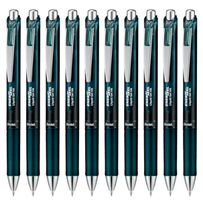 Pentel EnerGel Liquid Gel Rollerball Pen Original EnerGel ink, writes gently, dries quickly, ideal for left-handers Push mechanism and metal clip, rubberised grip zone, 54% recycled content Refillable with XLR7 refill and all other EnerGel refills 0.35 mm line width = 0.7 mm ball, ink colour: indigo black