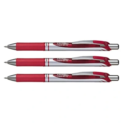 Pentel Energel Xm Gel Pens Retractable 0.7mm Tip 0.35mm Line Red Ink Ref BL77[Pack of 3]